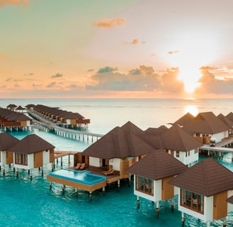 Resorts Flutuantes: Bangalôs sobre a água oferecem privacidade total.